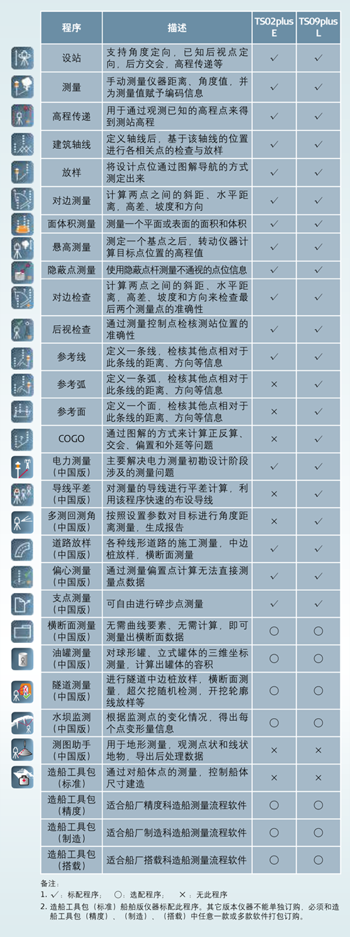 | TS09plus L具有更加丰富的机载应用程序和中国本地化定制程序,能够满足各种不同测量工作的 需求,解决测量难题,提高工作效率。 |